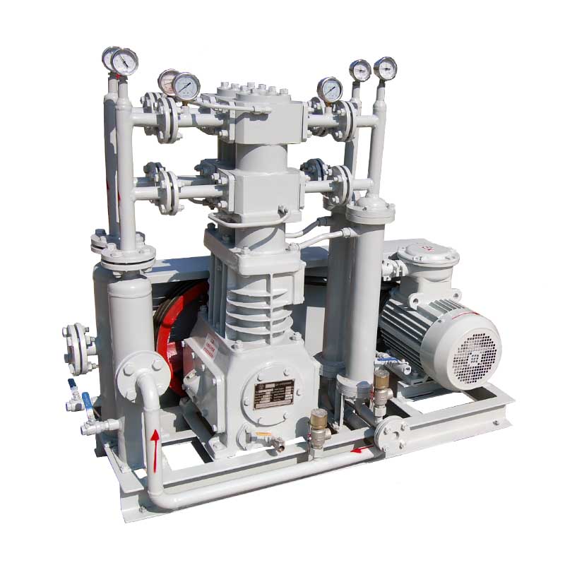 丁烷壓縮機(jī)壓縮機(jī)是我公司新型產(chǎn)品,它集壓縮機(jī)、氣液分離器、安全閥冷卻器、電動(dòng)機(jī)等為一體,成一完整的機(jī)組。具有功能多、體積小、重量輕、功率小、運(yùn)行平穩(wěn)可靠等特點(diǎn),并有良好的安全性能。由于采用獨(dú)特的無油潤滑設(shè)計(jì),氣缸內(nèi)無需用油潤滑,因而不會(huì)對介質(zhì)造成污染,使被輸送物質(zhì)保持純凈。本機(jī)設(shè)計(jì)成機(jī)組型式,許多管線上的附件都安裝在機(jī)組上,省卻了氣液分離器、穩(wěn)壓罐、安全閥、進(jìn)氣過濾器等,減小了機(jī)房的面積,減少了操作維護(hù)工作量,節(jié)省了投資。