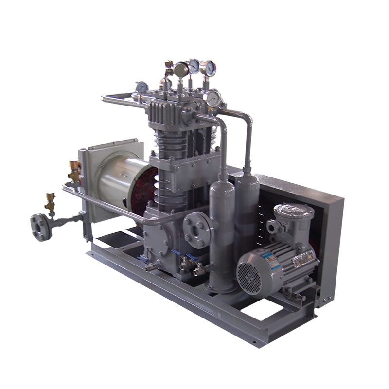 環(huán)氧乙烷壓縮機(jī)是我公司新型產(chǎn)品,它集壓縮機(jī)、氣液分離器、安全閥冷卻器、電動(dòng)機(jī)等為一體,成一完整的機(jī)組。具有功能多、體積小、重量輕、功率小、運(yùn)行平穩(wěn)可靠等特點(diǎn),并有良好的安全性能。由于采用獨(dú)特的無油潤滑設(shè)計(jì),氣缸內(nèi)無需用油潤滑,因而不會(huì)對(duì)介質(zhì)造成污染,使被輸送物質(zhì)保持純凈。本機(jī)設(shè)計(jì)成機(jī)組型式,許多管線上的附件都安裝在機(jī)組上,省卻了氣液分離器、穩(wěn)壓罐、安全閥、進(jìn)氣過濾器等,減小了機(jī)房的面積,減少了操作維護(hù)工作量,節(jié)省了投資。