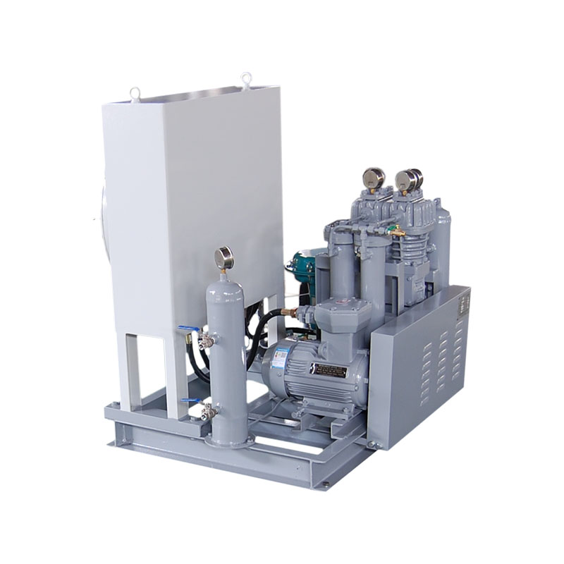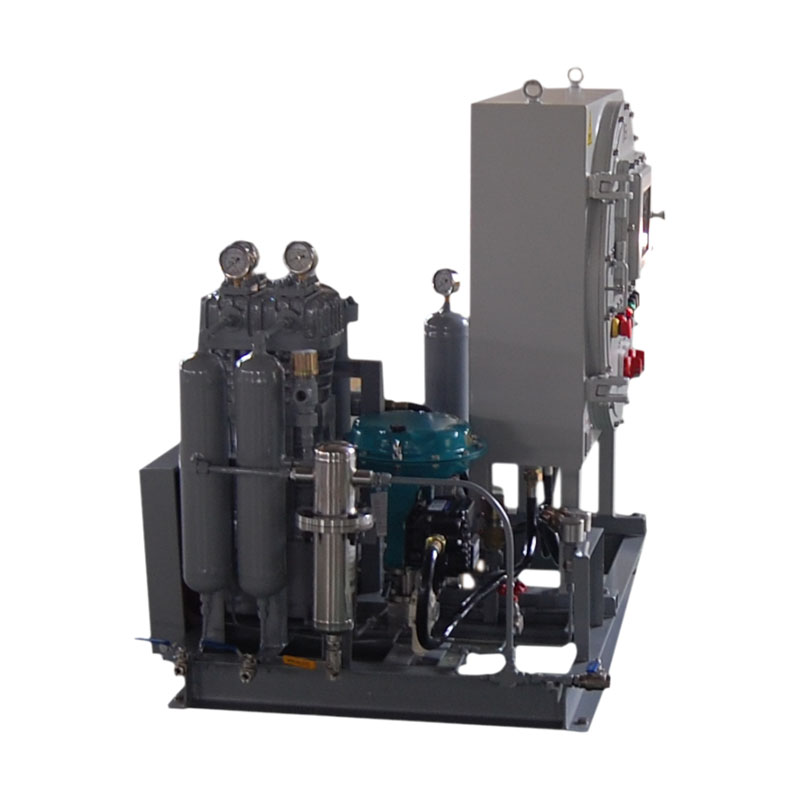 井口氣壓縮機(jī)是我公司新型產(chǎn)品,它集壓縮機(jī)、氣液分離器、安全閥冷卻器、電動(dòng)機(jī)等為一體,成一完整的機(jī)組。具有功能多、體積小、重量輕、功率小、運(yùn)行平穩(wěn)可靠等特點(diǎn),并有良好的安全性能。它為輸送井口氣,可為用戶最大限度地創(chuàng)造經(jīng)濟(jì)效益。由于采用獨(dú)特的無(wú)油潤(rùn)滑設(shè)計(jì),氣缸內(nèi)無(wú)需用油潤(rùn)滑,因而不會(huì)對(duì)介質(zhì)造成污染,使被輸送物質(zhì)保持純凈。本機(jī)設(shè)計(jì)成機(jī)組型式,許多管線上的附件都安裝在機(jī)組上,省卻了氣液分離器、穩(wěn)壓罐、安全閥、進(jìn)氣過(guò)濾器等,減小了機(jī)房的面積,減少了操作維護(hù)工作量,節(jié)省了投資。